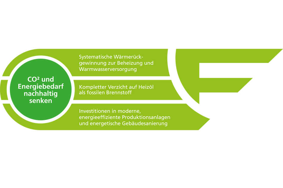 Heizöl als fossile Energie und der damit verbundene Ausstoß des klimarelevanten Gases ist für den mittelfränkischen Kunststofftechnik-Vorreiter damit Geschichte. Die Einsparung von CO2-Emissionen ist das oberste Ziel und konnte durch Maßnahmen, wie der Wärmerückgewinnung, einer energetischen Gebäudesanierung und stetigen Investitionen in energieeffiziente Produktionsanlagen, in den letzten 5 Jahren um fast 40% reduziert werden.
